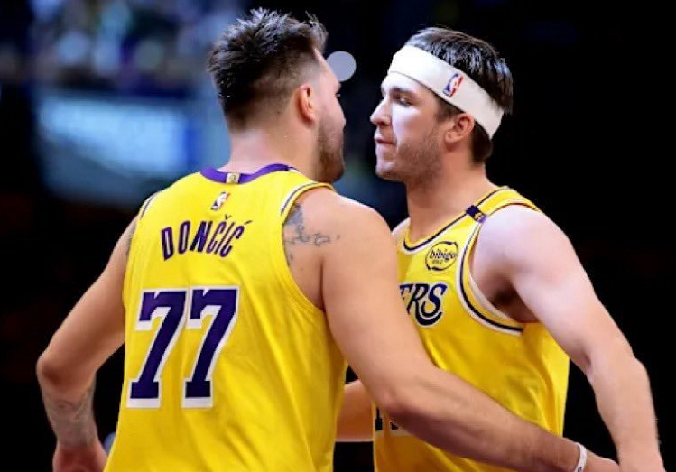 湖人队豪取5连胜,战绩来到42胜25负,反超火箭队(41胜25负)升至西部第3位。不仅如此,湖人队新王炸组合正式诞生——过去3场比赛,里皇和卢卡连续3场比赛同场砍下30+,里皇场均31分6.3板7助,卢卡37.3分10.6助11助,双核驱动太香了!当然了,这也要感谢老詹的牺牲,当他愿意放弃大量球权专注于干脏活累活时,湖人全队都被点燃了!这么打下去,我相信没有球队愿意在季后赛碰到湖人!球迷朋友们,你们觉得老詹休赛期愿意底薪留在湖人辅助新王炸组合吗?来给我留言评论探讨一下吧。